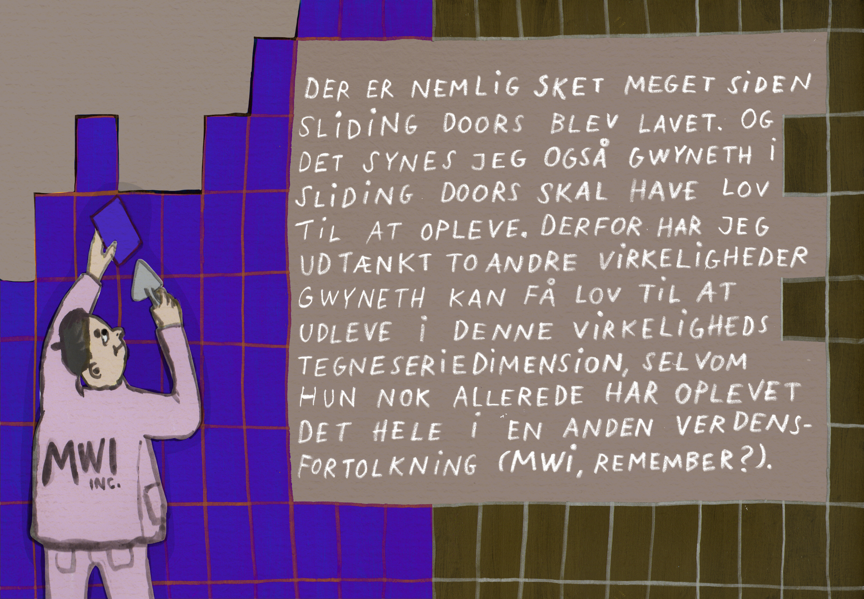 Webtegneserie, der i to parallelle billedspor undersøger, hvad der var blevet af Gwyneth Paltrow i filmen “Sliding Doors” fra 1998, havde hun blot levet i en henholdsvis antikapitalistisk og antipatrialsk verden. Tegneserien undersøger 90’ernes kvindesyn, popkultur og kvantefysik og blev udviklet til webmagasinet parole.cc